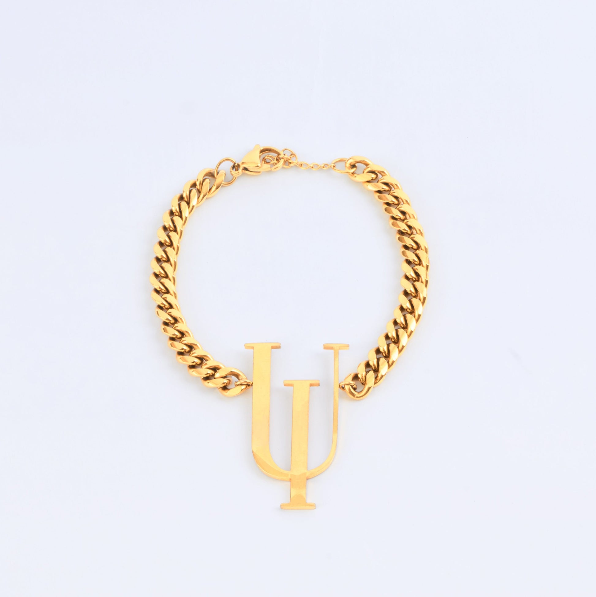 - Gold-Plated Monogram Bracelet: Adjustable 7.5-inch chain with extenders and an 8mm chain width, designed for all-day comfort and elegance. (Pendant Size: Height: 5cm, Width: 2.7cm, Thickness: 0.2cm.)