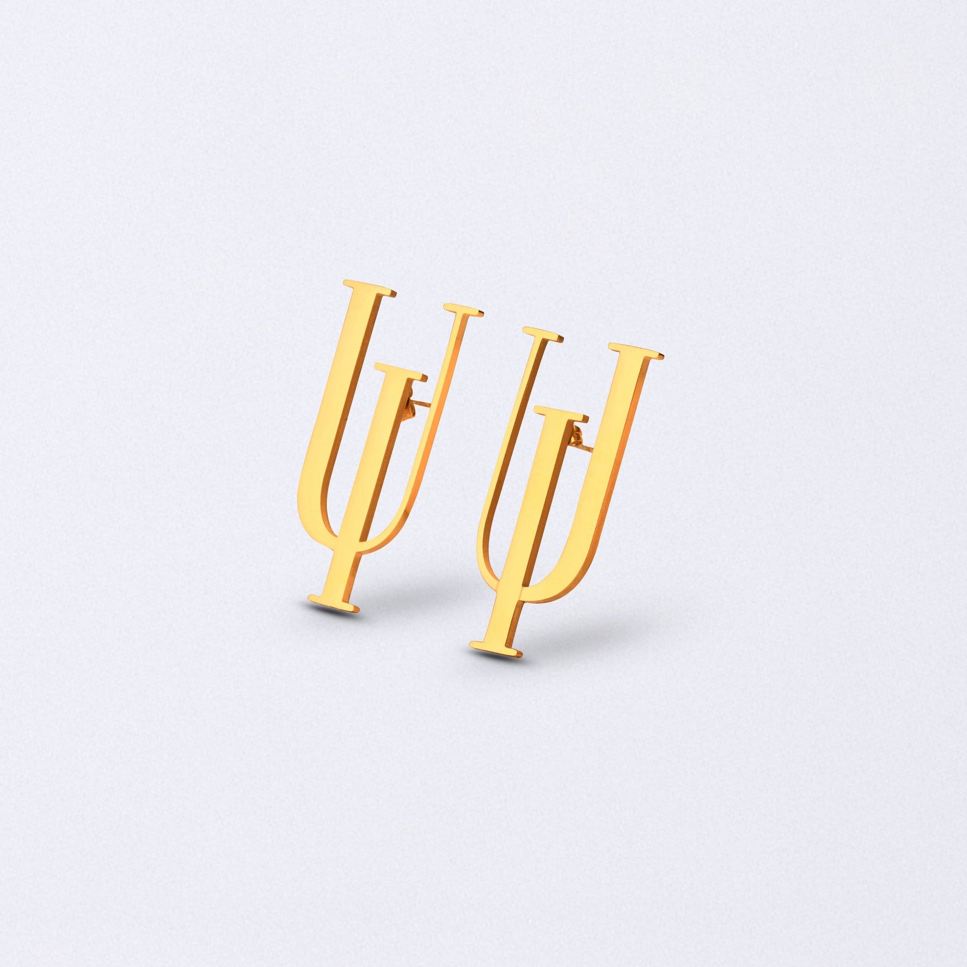 - Gold-Plated Monogram Earrings: Lightweight, durable design with a unique left and right side for modern elegance. (Size: Height: 5cm, Width: 2.7cm, Thickness: 0.2cm.)